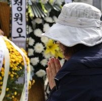 [포토] 성수대교 붕괴 30주년 위령제, 묵념하는 유가족