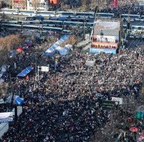 28일 서울 종로구 광화문 동화면세점 앞에서 대한민국바로세우기국민운동본부 주최로 '주사파 척결! 자유민주주의 수호 광화문 국민혁명대회'가 열리고 있다. 2024.12.28 [사진=연합뉴스]올해 마지막 토요일인 28일 서울 광화문에서 윤석열 대통령의 탄핵 찬반 집회가 동시에 열렸다. 윤석열 대통령 탄핵 심판 첫 변론준비기일…