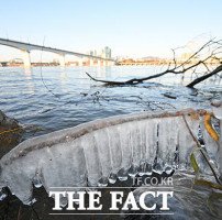 중부지방을 중심으로 한파특보가 발효된 22일 오후 서울 영등포구 한강변에 고드름이 얼어 있다. /박헌우 기자[더팩트ㅣ박헌우 기자] 중부지방을 중심으로 한파특보가 발효된 22일 오후 서울 영등포구 한강변에 고드름이 얼어 있다.기상청에 따르면 이날 북쪽에서 찬 공기가 남하하면서 대부분 지역의 기온이 어제 보다 5~10도가량 …