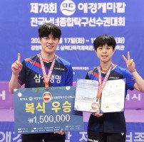 사진=대한탁구협회 제공 삼성생명의 새로운 혼합복식 페어 조승민-주천희 조가 제78회 애경케미칼 전국남녀종합탁구선수권대회 혼합복식을 제패했다. 대회 개막 6일차 첫 경기로 삼척시민체육관에서 치러진 결승전에서 한도윤(세아)-김하영(대한항공) 조를 3-0(11-3, 11-6, 11-1)으로 꺾었다. 경기 초반부터 빠르게 앞서나…
