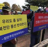 경기 파주시에서 대북전단을 살포하려던 납북자가족모임의 계획이 31일 경기도 특별사법경찰과 접경지역 주민들의 저지에 무산됐다. 31일 경기도 파주시 임진각 국립 6·25전쟁 납북자기념관에서 납북자가족모임과 자유북한운동연합이 대북 전단 살포를 시도하자 민통선 주민들이 피켓 시위를 벌이고 있다. 연합뉴스 납북자가족모임은 대북전…