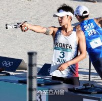 전웅태가 10일(한국 시간) 프랑스 베르사유 궁전 경기장에서 열린 2024 파리올림픽 남자 근대5종 결선에서 레이저런 사격을 하고 있다. 전웅태는 6위를 기록했다. 2024. 8. 10.파리 | 박진업 기자 upandup@sportsseoul.com