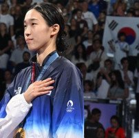 2024 파리 올림픽에서 한국의 13번째 금메달을 따낸 김유진(23·울산광역시체육회)은 결승전에 앞서 지금까지 쏟아낸 땀방울이 주마등처럼 스쳐 지나갔다고 밝혔다. 김유진이 8일(현지시각) 프랑스 파리 그랑 팔레에서 열린 2024 파리 올림픽 태권도 여자 57kg급 시상식에서 금메달을 목에 걸고 국기에 대한 경례를 하고 있…