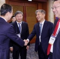 [포토] 인사하는 한덕수 총리와 현상순 회장