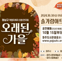 경기 파주시립예술단의 공연 ‘오래된 가을’이 오는 30일 오후 7시 30분 솔가람아트홀에서 열린다.파주시립예술단은 이번 공연을 위해 원주시립합창단의 ‘정남규’ 상임지휘자를 초청하고, 미국의 현대합창곡과 한국 작곡가들의 음악, 아프리카 남미의 개성 있는 민속음악을 엄선했다.정남규 지휘자는 한국합창지휘자협회 상임이사로서 국내…